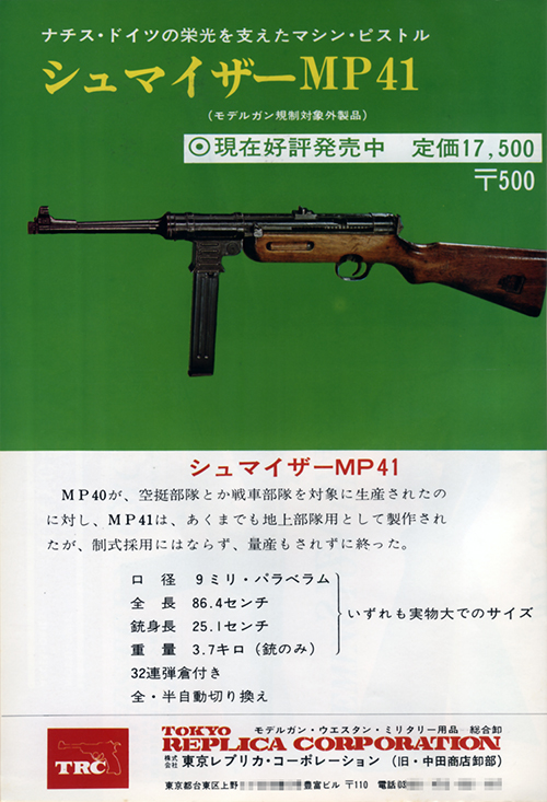 1971年の第一次モデルガン法規制により長物に注目が集まる中、中田/TRCから新製品としてMP41が発売された。1968年のMP40の発売時から紹介されてはいたが1品作りの試作のみで、これが最初の量産品だった。しかし人気はなく、わずか1年ほどで広告から消えている。