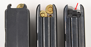 ダブルスタック・ダブルフィードは1発目がフォロワーと片側のリップ、そして2発目以降はマガジン上端のカートリッジと反対側のリップとの間にカートリッジを割り込ませていくので、シングルフィードに比べて弾込めは容易だ。しかし同じダブルフィードでも、マガジンの厚みやリップの角度、それにマガジンスプリングのテンションといった3次元的な要素が機種によって異なり、弾込めの難易度に差が生じるのだ。