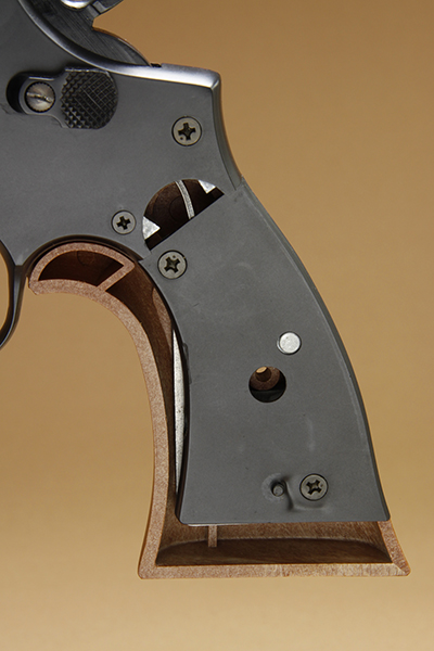 ただ、ブラック・ニッケルは濃いグレーという感じで、岡田さんとしてはもっと濃い黒にしたかった。そこで新たにアメリカで実銃を購入して採寸、型取りなどが行われ、新しく設計されたM19では、コスト的に高くなるがブラック・クロームに変更したという。これがまたファンのハートを射止め、大ヒットにつながったわけだ。