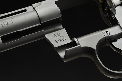 実銃において、1969年の途中でコルトは、パイソンのシリアルナンバーの先頭に“E”を追加し、新しいシリアルナンバーを“E1001”からスタートさせた。その919挺目の製品が“E1919”だ。すなわち冴羽 獠のパイソンは、2ndジェネレーションに属するモデルということになる