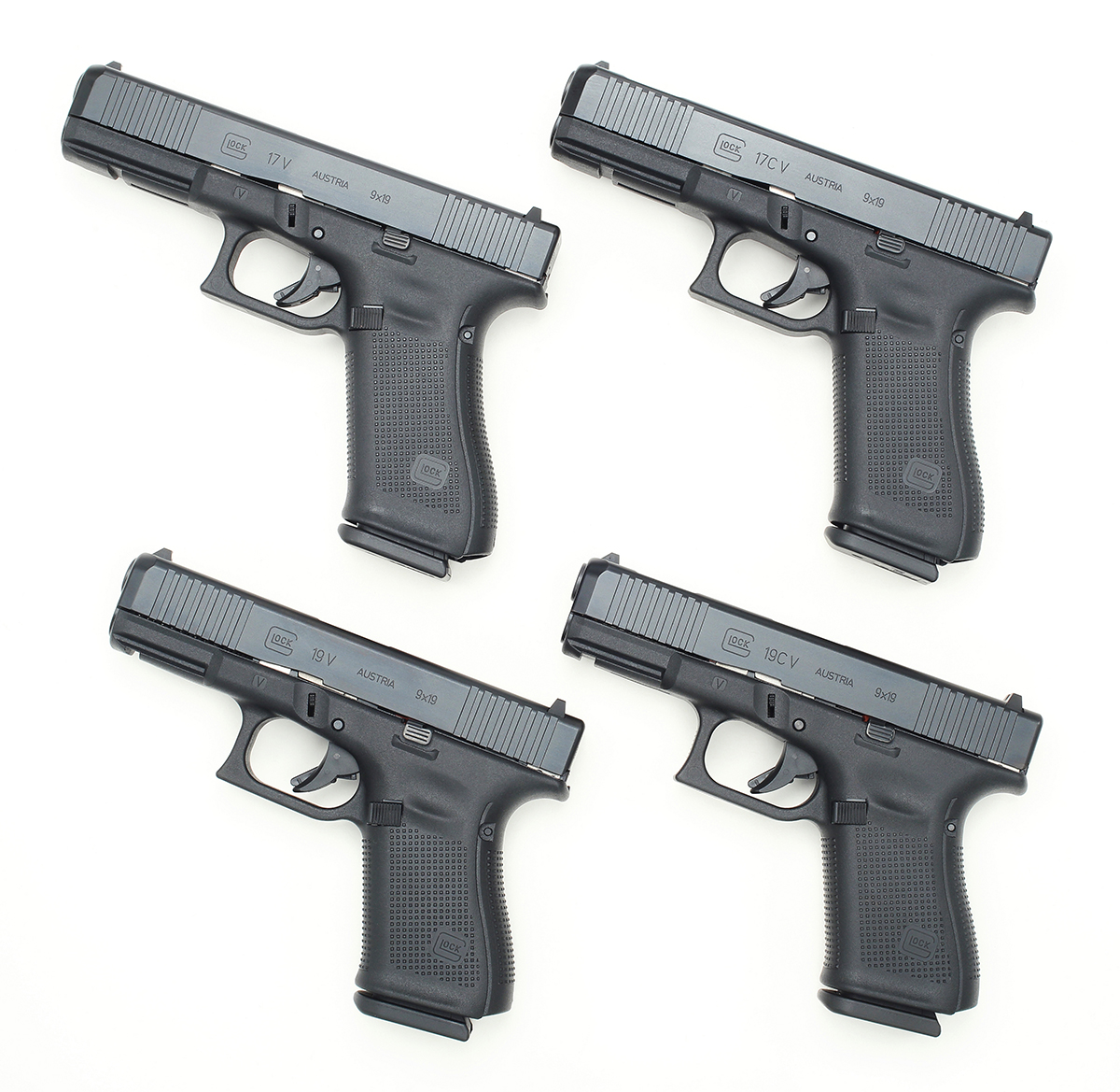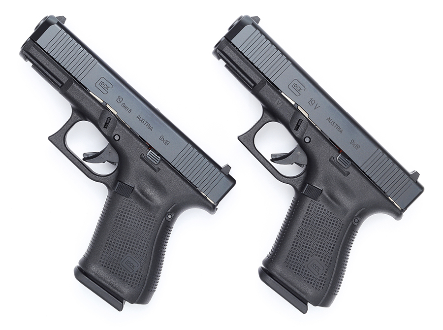 2025年10月21日にグロックから届いたEメールで発表されたVシリーズは、フルオート改造パーツの装着を防止するために、従来モデルと置き換わるべく登場した。一般経路で市販されるのはG17 V、G19 V、G19X V、G45 V、G26 V、G20 V MOS、G23 V、G23 V MOS、G21 V MOS、G44 Vで、特定ディストリビューターからの限定供給モデルとしてG19C V、G45C V、G17C V、G19X V MOS TBがリストアップされている。グロックのモデルナンバーと口径や銃身長などの関係はここでは割愛するが、“C”は“Compensated”の略でガスポート付き仕様、“MOS”は“Modular Optic System”の略でオプティックレディ仕様、“TB”は“Threaded Barrel”の略でネジ付き銃身仕様を意味するということは、ここで念のために記しておこう。