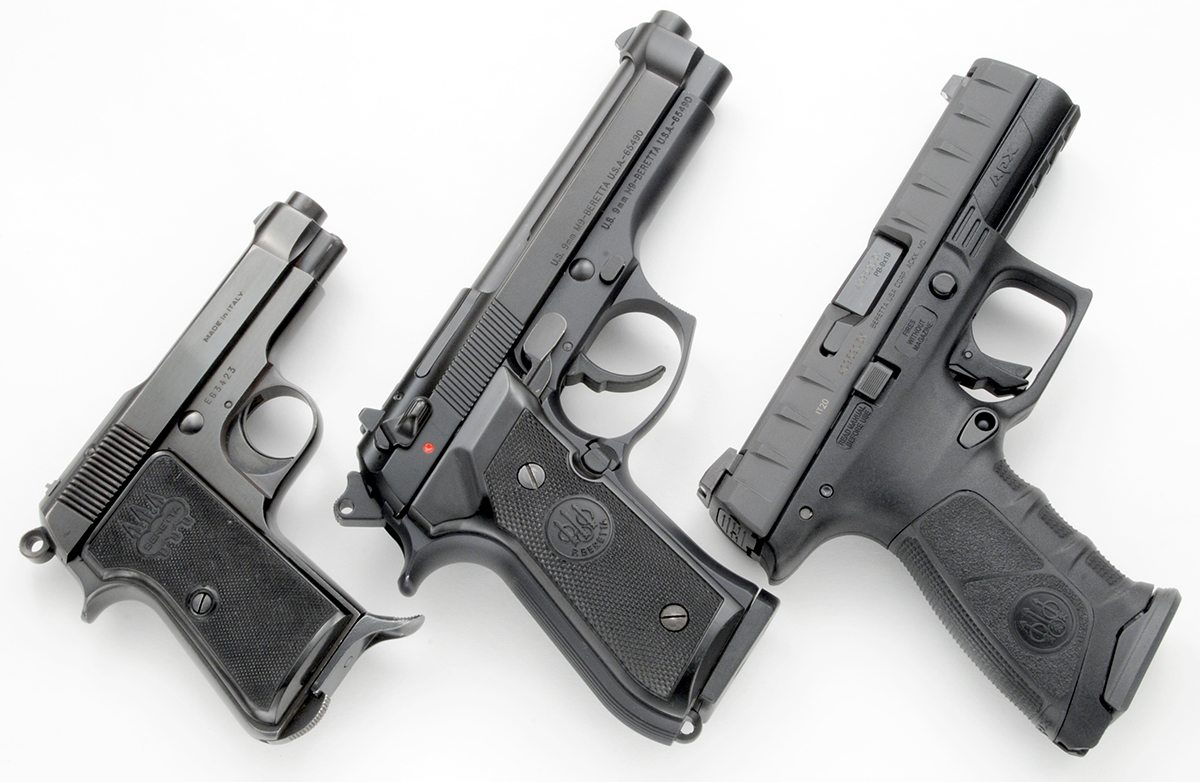 世界最古の銃器メーカーとして約500年の歴史を持つベレッタ社については、過去のリポートで何回も語られてきた。オートピストル分野に足を踏み入れたのは他の多くのメーカーと同様、1900年初期になってからだった。ベレッタもマウザー、ワルサーとほぼ同時期にスタートしている。ベレッタオートピストルには初期のモデルから長い間、スタイルに独自性があった。バレルトップのスライド部分を大胆にカットしたあの通称ベレッタスタイルのことである。ベレッタM1915/1917/1919 口径9mm Glisenti(グリセンティ)は 第一次、第二次大戦を通じてイタリア軍のサービスピストルとして使われた。話が少々飛ぶが、1934年、ベレッタ M1934 口径9mm×17 Corto/.380ACPがイタリア軍に採用された。すなわち1934-1945年の間、イタリア陸軍サイドアーム口径には2種類あったということになる。