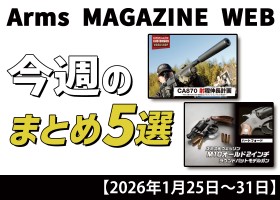 BLOG 2026/02/03 SHOT SHOW 2026 NOVEL ARMS NEWS 2026/02/03 光学式電子トリガーGATE ASTERを標準装備「G&Gアーマメント TR16 GMS MK1 9” 電動ガン」 月刊アームズマガジン NEWS 2026/02/03 昭和大好きかるた 時代を超えた普遍の良き「何か」を振り返る 第46回「ん」 月刊アームズマガジン NEWS 2026/02/02 ドットサイト&ショートスコープ セットアップマニュアル 月刊アームズマガジン BLOG 2026/02/02 PARD(パード)という光学機器。 ドイツと狩猟とおいしい話 NEWS 2026/02/02 MTM WATCH HYPERTEC CHRONO 3A 月刊アームズマガジン NEWS 2026/02/01 新たな魅力を引き出すオリジナルデザイン!「タナカ ペガサス2ガスガンシリーズ SAA 2ndジェネレーション4-3/4インチ ノンフルーテッドシリンダー・ステンレスフィニッシュガスガン」 月刊アームズマガジン NEWS 2026/02/01 今月のエアガン・モデルガン新製品【2026年2月】 月刊アームズマガジン 過去のニュースを見る 過去のブログを見る