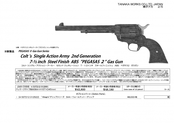「 Colt SAA 2nd Generation 7-½ inch “Steel Finish” PEGASAS Ⅱ Gas Gun」