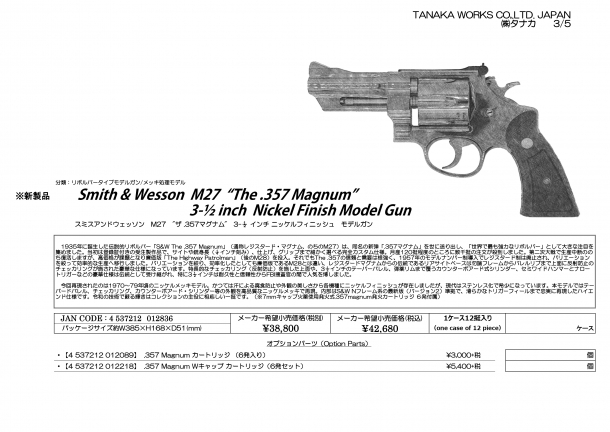 「Smith & Wesson M27 “The .357 Magnum” 3½ inch Nickel Finish Model Gun」