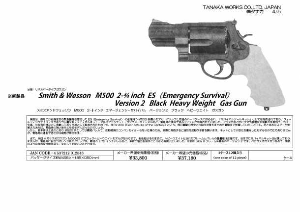 「Smith & Wesson M500 2-¾ inch “ES” Ver.2 Black Heavy Weight Gas Gun」