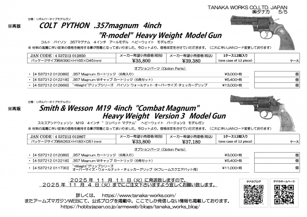 問い合わせが多く「もう一度手にしたい」との声が多かった定番の.357マグナムモデル2機種。買い逃していた方は是非この機会に。