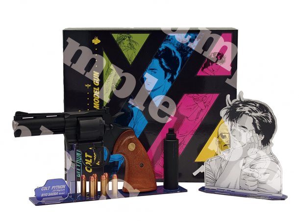 主人公・冴羽獠(さえば りょう)が劇中で使用する「コルトパイソン」を、弊社の「コルトパイソン 4inch R-model ヘビーウエイト モデルガン」をベースにモデルアップ。