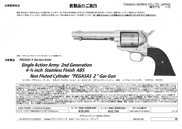 高性能でご好評いただいているペガサス2 SAA ガスガンに、このたびステンレスフィニッシュモデルが加わります。