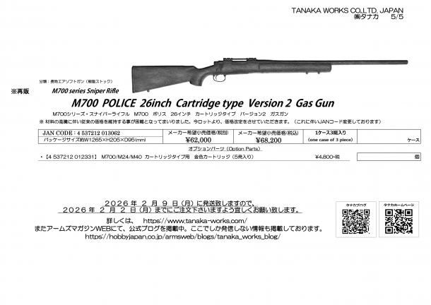 長物では、超久々にM700 POLICE 26インチ カートリッジタイプ Ver.2が再販となります。