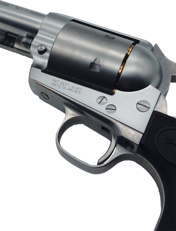 この仕様を取り入れることで、シリンダーの存在感が一段と増し、クラシックなSAAでありながら、どこかカスタムガンのような雰囲気を持った一挺に仕上がっています。