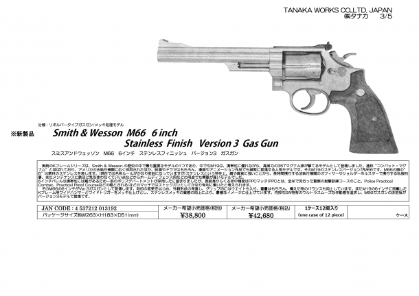 『S&W M66 6inch Stainless Finish Ver.3 Gas Gun』