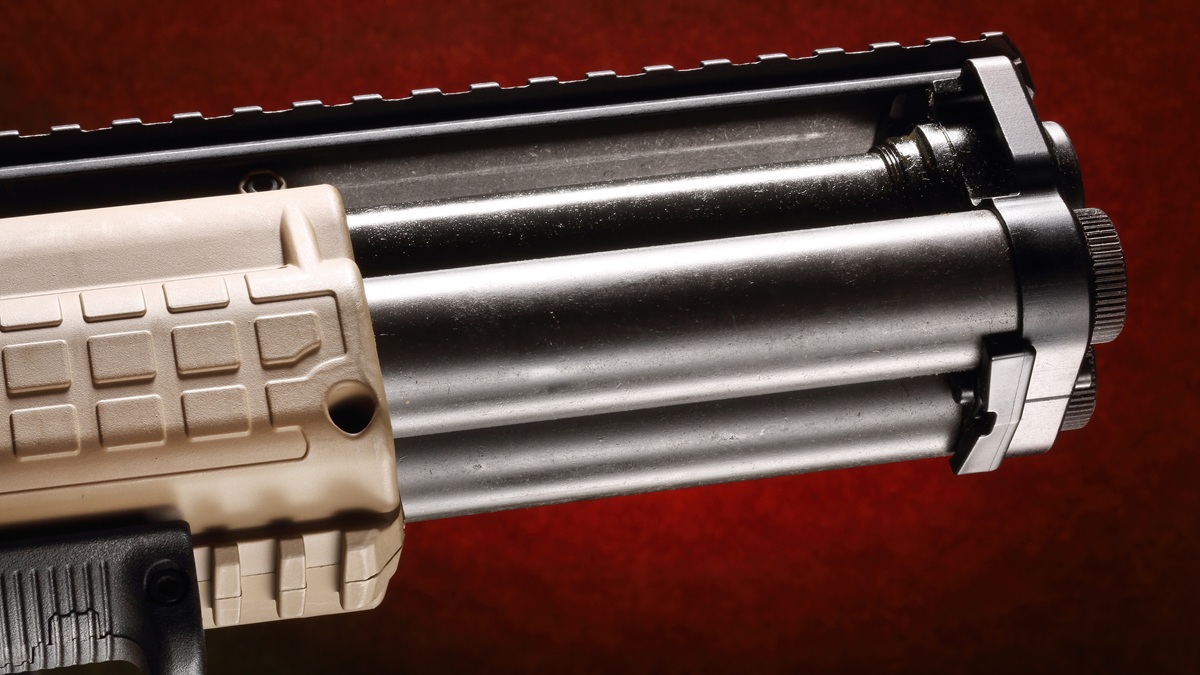 ブルパップデザインにこだわるKEL TECが市場に送り出したショットガンはデュアルマガジン・セレクトフィード機能を持つポンプアクションモデルだ。装弾数の限界に挑戦しながらコンパクトにまとめたKSGだが、このモデルには公的機関向けとして、さらにコンパクトにしたショートバレル仕様がある。