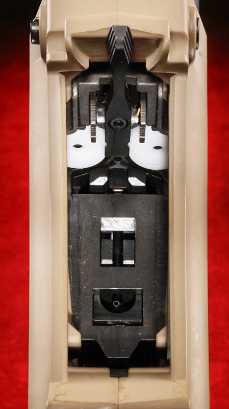 ケルテックは低価格製品で成功を勝ち取ったメーカーではあったが、そこから脱皮しよう挑戦したのが2007年に開発発表したRFBだ。RFBはRifle, Forward-ejection, Bullpupの略で、フォワード・エジェクション…つまりFN F2000のように空ケースが銃身の上にあるチューブを伝って前方にエジェクトされるという、これまたケルテックが好きそうな奇抜な発想のライフルであった。
