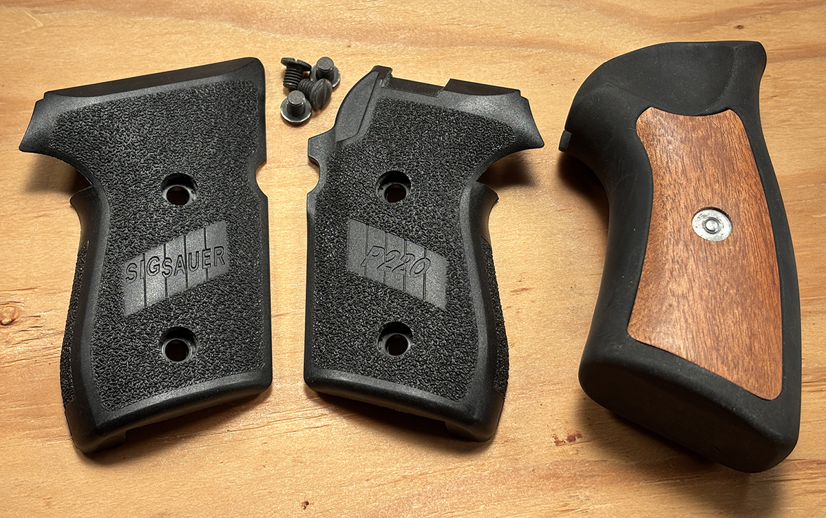 さて、その日はマガジンを一個探していた。S&WのCS9のマガジンだ。そうです。今号で記事にしたのでバレバレですが、先月のGreenvilleのショーで見付けたCS9は結局ちゃんと買ったのだ。けど、マガジンが一個だけで寂しく、ずっと探してるんだけど割とないのよね。ebayでは皆50ドル以上で妙に高い。ちょうどマガジンを大量に集めたテーブルがあり、チェックしたら首尾よく発見。でも、使い古した感じが気に食わず、それでいてお値段45ドル。まあ20ドルとかなら我慢するけど、コレはちょっと嫌だな。ということで泣く泣く流し、代わりに同じテーブルにあったグリップを2個ゲットした。RUGERのGP100用と、SIGのP220コンパクト用だ。どちらも15ドル。SIGは実銃を持ってないからあくまでもコレクション。