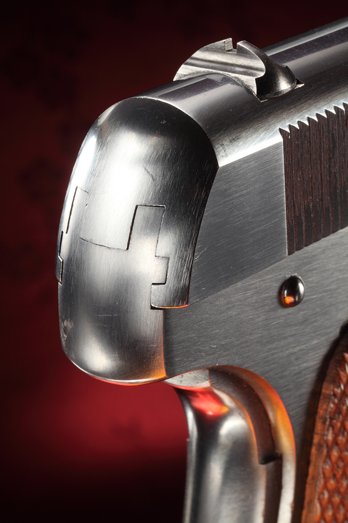 ご覧の1挺は、シリアルが502000台ということでタイプ④にあたる。ブッシングは無く、バレル先端に付いたラグがスライドのリセスにはまり、バレルがホールドされる方式だ。