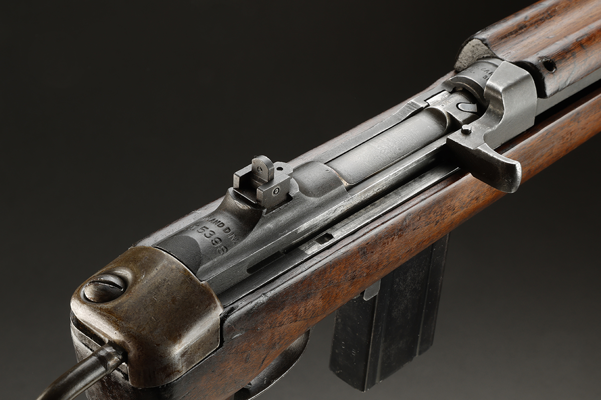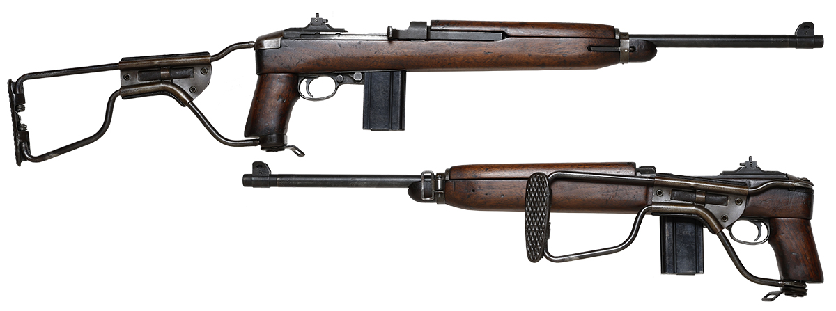 M1ライフルとM1911A1の中間に位置する個人防衛用火器がM1カービンだ。この銃は第二次大戦中にもっとも多く製造されたアメリカ軍の小火器となっている。小型軽量で操作性が高かったことから、空挺部隊もこれを活用、そのため、さらに小型化すべくM1A1パラトルーパーカービンが作られた。