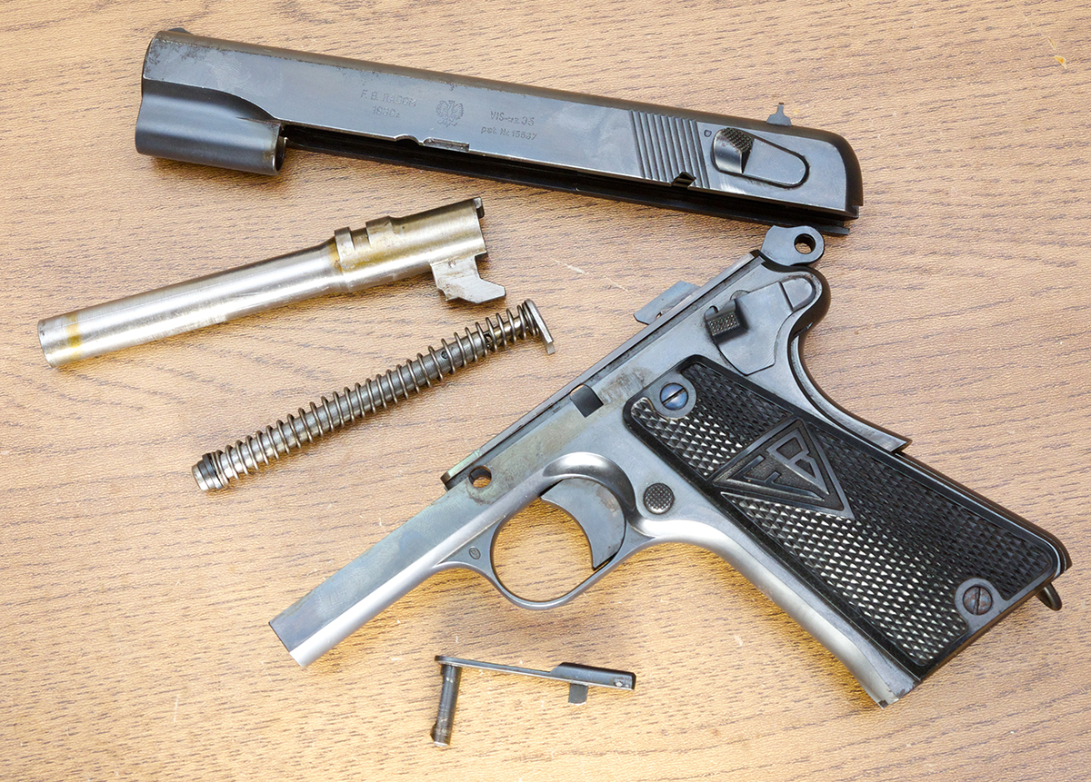 この銃はジョン・ブラウニングに影響を受け、1911を手本にしたことは一目でわかる。独自デザインを考える時間的猶予はなかったのだろう。そこで、手っ取り早く、1911を参考にした。まずは.45口径をヨーロッパで主流になりつつあった9mmパラベラムに置き換えている。