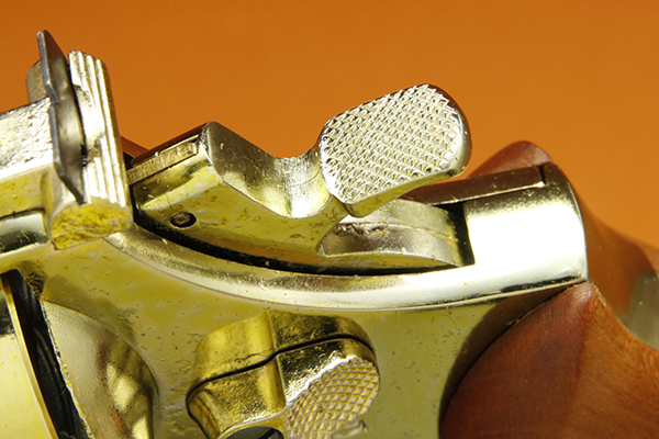 トリガーストップは省略されていたが、これがモデルガンで初めて再現されたのは、確か1982年発売のCMCのプラスチック製S&W M19、6インチ・モデルからではなかっただろうか。