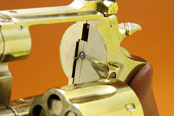 こうして仕様が決定した。モデルガン式のダブルアクション機構や、簡略化されたシリンダーの固定方法、クリックなしのフルアジャスタブル リアサイトなどは当時の標準だ。ちゃんとハンマーはリバウンドするし、メインスプリングには板ばねも使っている。