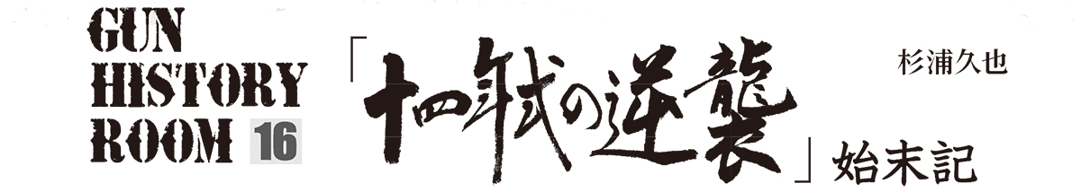 旧Gun誌では、ひとつのレポートはそれだけで完結してしまい、十分な検証ができなかった場合でも、その後に追加検証を行なってレポートする事はほとんど無かった。ましてや他のレポーターも参加して雑誌横断的に事実関係を徹底的に追及するような試みも無かった。しかし、松尾副編集長は今回、それを実行しようとしたわけだ。ちなみに“十四年式の逆襲”という毛筆で書かれたタイトル文字は、松尾副編集長のお母様が書かれたものだ。