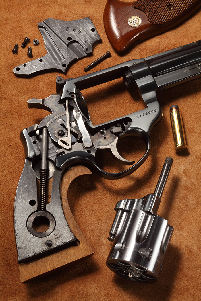 ぶっちゃけ、サムラッチにリアサイト等の基本的な装備、そして内部メカに至るまでまんまS&Wのコピーであることは火を見るよりも明らか…でありながら、パーツ一個一個の造形はことごとく大味で、なぜかコルトにありがちなアクの強さみたいのが漏れ出ちゃってる様子がゾクゾクなのだ。思えば、ロッシーにしてもトーラスにしてもラーマにしても、S&Wのコピーのワリにはどれもアクの強さは飛びっ切りだけどね。