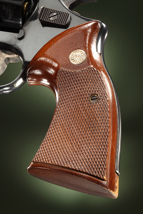 あと、少し残念なのはグリップか。S&WのKフレとの互換性が微妙にないのだ。微妙というのは、アウトラインは一緒なのに、グリップピンとグリップスクリューの位置が違うのである。S&W側のグリップピンさえ抜けば、アストラのグリップを付ける事は可能。が、その逆は、グリップスクリューがフレームに当たって無理なのである。誠に惜しい。余談ながらこの一挺、銃本体は程度極上なのに、グリップだけ擦れているのが謎といえばナゾで。