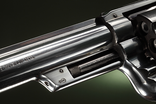 6インチというバレル長が、まずは派手で嬉しいではないか。マグナムリボルバーとしての主張は充分。まるで三流のアクション映画をけだるい日曜の午後に眺めるようなゾクゾク感が全身に漂っているぞ。