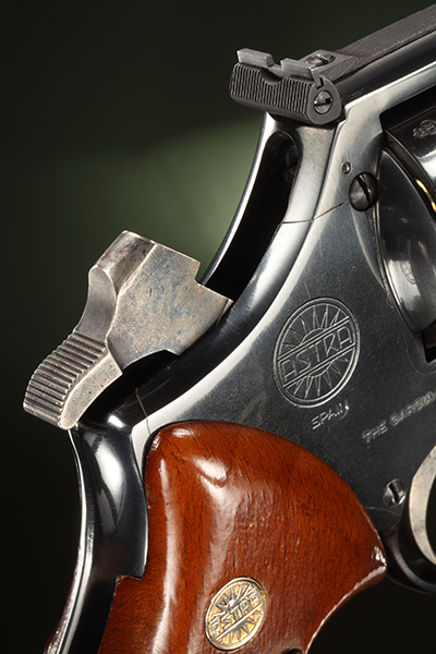 発見は行きつけのガンショップ、お値段は299ドルだった。箱等の付属品は一切なく、けれど本体は極上のコンディションなので一応納得。製造年は73年の模様だ。スペインの銃はシリアル番号のイニシャルから年代が分かる仕組みになっている。ちなみに、73年当時の価格は110ドル。モデル19が150ドル、トルーパーが149.95ドルの時代である。