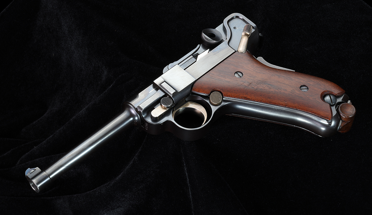 先月号のボーチャードピストルに続いて、その発展改良型であるモデル1900をご紹介したい。その優美なデザインに触れていると、後のP-08とはまた別の奥深い魅力を感じる。またこの個体には、20世紀初頭のカスタムストックも付いており、これもまたとても興味深いものだ。
