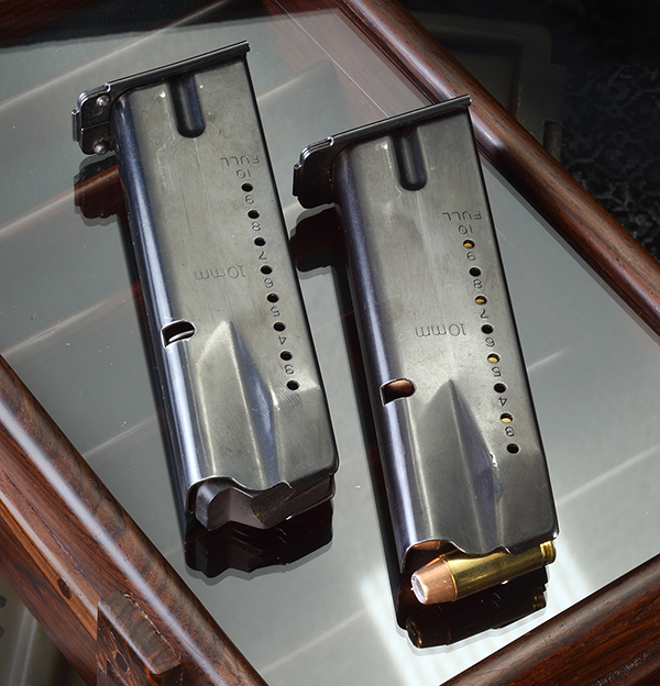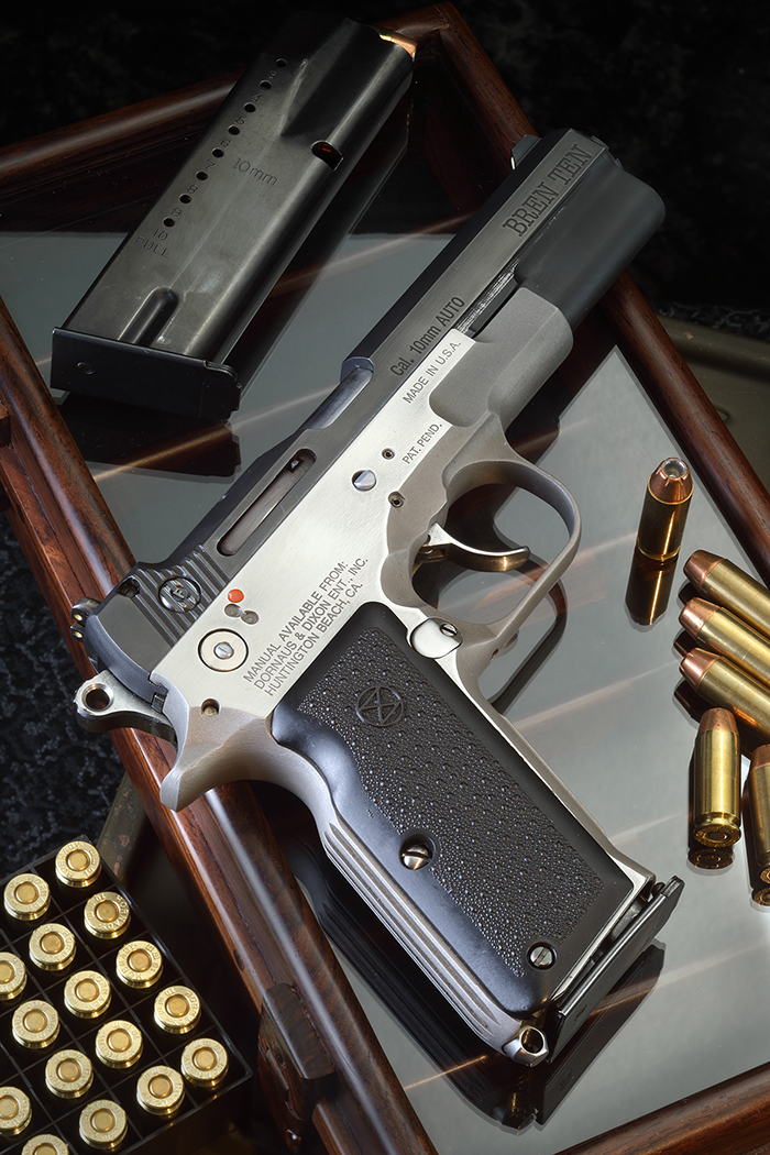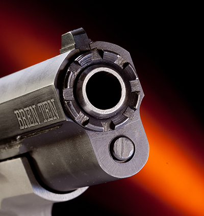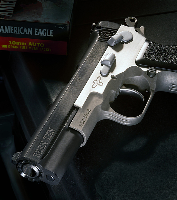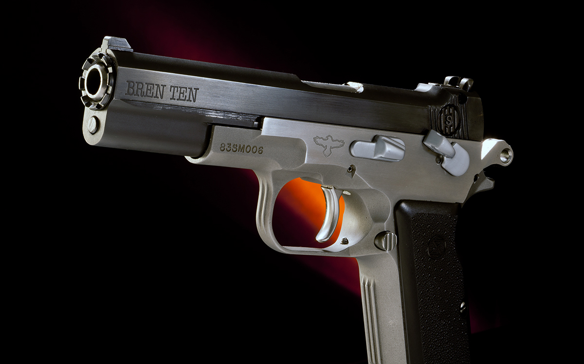 10×25mmというキャリバーこそが、ブレンテンが注目された大きな理由のひとつであるのは間違いない。装弾数10発で、.357マグナム並みの威力を誇るセミオートなのだから、競技シューターだけでなく、ハンターやLE(ローエンフォースメント:法執行機関)など、いろんな方面にアピールするのは当然であろう。結果として、1987年、Colt社はこのアモを用いる1911デザインを踏襲した“デルタエリート(Delta Elite)”モデルのリリースに踏み切る。強力なダブルリコイルスプリングシステムを与えられたデルタエリートは、初期のモデルにおいてその強力なリコイルとプレッシャーに耐え切れず、スライドやフレームにクラックが入るなど、いくつかの問題点が噴出した。コルト社は対策パーツを出すなど、改良は進められたが、いかんせんその強烈なリコイルや弾薬の価格が高かったことなど、ポピュラーにはなりきれずカタログから消えていった。