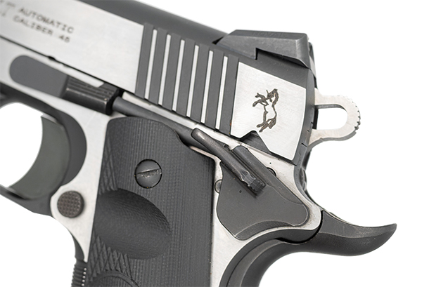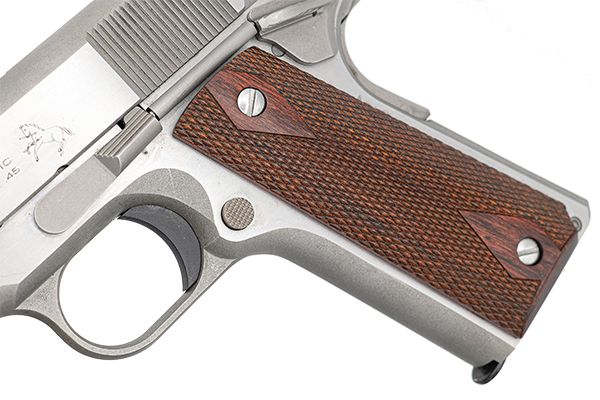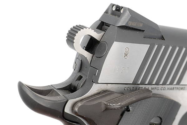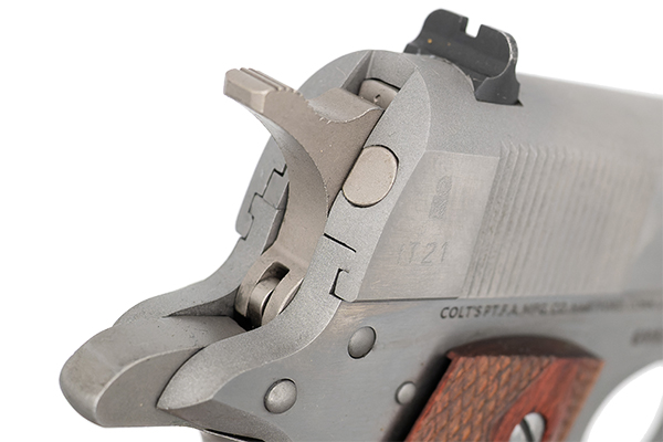 今回用意して頂いた7挺の中では、もっともスタンダードな1911だ。1911 Classicというシリーズで、カーボンスチール仕様とステンレス仕様がある。口径は45ACPと38スーパーから選択可能だ。名前の通り、最も伝統的なスタイルを維持している。それは外観だけでなく、内部機構にも及んでいて、このシリーズにはオートマチックファイアリングピンブロックセイフティが内蔵されていない。コルトはそれを“Series 70 Firing System”と称している。