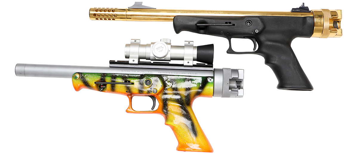 ロングモデルでは.30/30Win、.444マーリン、.450マーリン、.45ロングコルト/.410(ベントリブバレル)、.460S&Wマグナム、.500S&Wマグナムがあり、そしてそれらを上回る.450マーリンが頂点にある。バレル長は7.5と10インチの2種類だ。