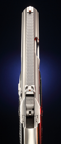 本国ドイツ製はスライドがスティール、フレームがアルミ合金のブルー仕上げだったのに対し、インターアームズ製はご覧の通りオールステンレスの出で立ちだ。登場時の価格は350ドル。PPK/Sのステンレス版が499ドルの時代である。