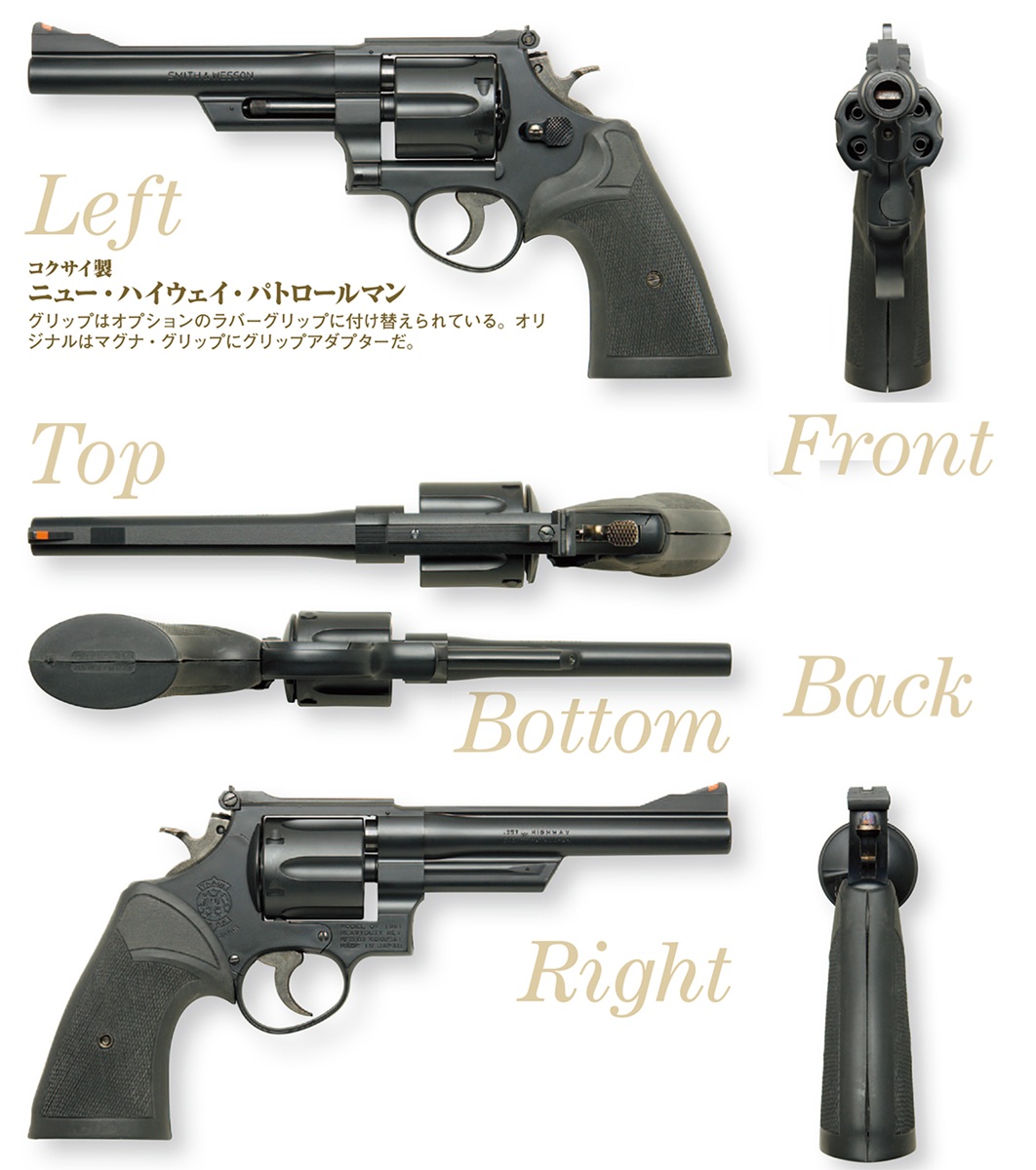 国際産業が1979年からブランド名をコクサイに変更し、本腰を入れて次々モデルガンを発売していく中、特にリボルバーのコクサイとして知られるようになるきっかけとなったモデルガンがハイウェイパトロールマンだ。すでにパイソンやトルーパー、そして当時人気だったPPCカスタムリボルバーなどを発売していたが、完全新規設計のこのS&Wリボルバーのインパクトは大きかった。