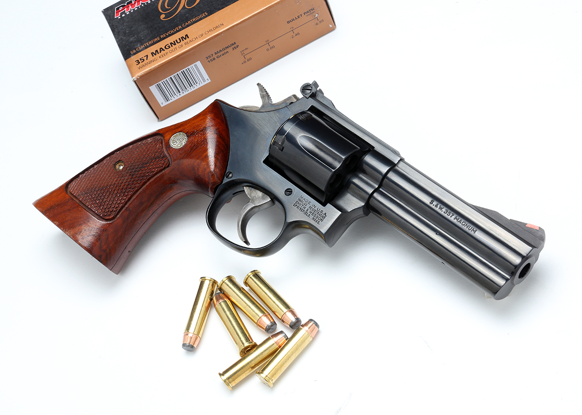 357マグナムはスミス&ウェッソンが1934年に発表したカートリッジだ。38スペシャルをベースとし、ケース長を3.2mm延長、火薬量を増やし158gr弾を1,500fpsの初速で撃ち出す強力なリボルバー用カートリッジという位置づけだった。1935年には357マグナム弾を使用する初のリボルバーとして大型のNフレームを使用する、その名もずばりの“357マグナム”がS&Wから発売された。これは当時、“レジスタードマグナム”とも呼ばれ、その威力からハンティングだけではなく、法執行機関でも多く愛用される人気の機種となった。この銃の発展型が1957年にモデル27と呼ばれるようになる。