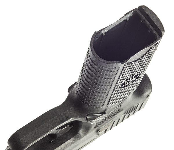 グリップ側面上部と下部とではテクスチャーが異なっている。このあたりもFNSと比べて進化した部分だ。