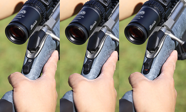 また、一目では判別できない初代とGenIIとの違いとして、スライド式のタングセイフティが2ポジションから3ポジションとなったことにも留意したい。後にいっぱいまでスライドさせるとトリガーとボルトがロックされるセイフ/ロックト状態(白線2本が表示)、中間位置まで前方にスライドさせると白線1本が表示され、トリガーはロックされたままでボルトの操作が可能となるセイフ状態(白線1本が表示)、前方いっぱいまで前進させるとトリガーが引けるファイア状態となる。