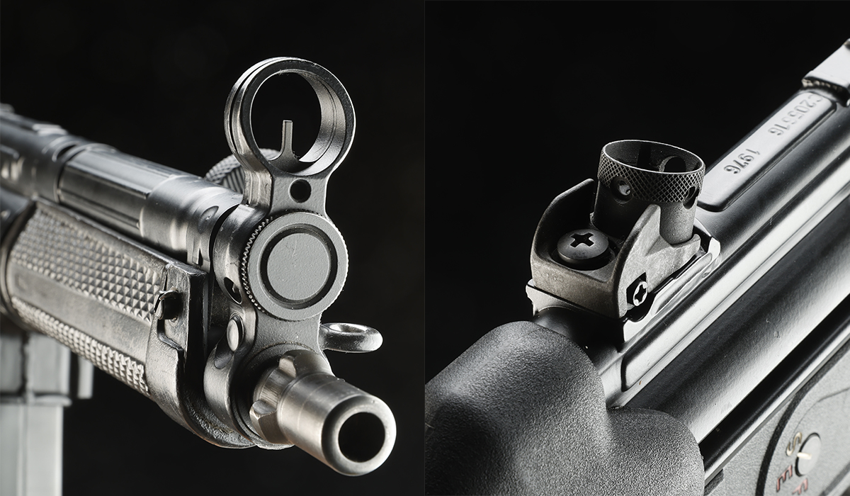 リアサイトはロテイティングディオプタードラムタイプで、4個の径の異なるサークルアパーチャー(ピープ)サイトが備わっている。通常、径の大きなサイトは近距離で素早くターゲットを捉える時に使用し、径の小さなサイトは、遠距離からより正確に射撃する際に用いる。このドラムタイプリアサイトはサークルアパーチャーではなく、大きさの異なるスクエアノッチが4つ備わったタイプも選択可能だ。スクエアノッチはより素早くサイトでターゲットを捉えることに優れ、サークルアパーチャーは正確な射撃に適している。
