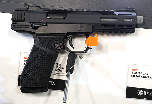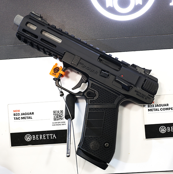 今回の新製品は、B22 JAGUAR TAC METALだ。アルミフレームの.22LRピストルだが、ピカティニーレイルとM-LOKスロットが装備されている。コンペティションモデルもあり、単なるプリンキングピストルではない。ジャガーという名称の22口径は半世紀以上前のモデル71ジャガーを彷彿させるものだ。