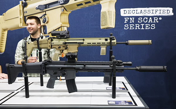 2025年10月、FNはSCAR 16S, 17S, 20Sの民間市場への販売を終了した。しかし、これはSCARの終焉ではなかった。FNはこの1月、次世代型SCARを発売した。写真の奥(FDE)が17S, 手前(ブラック)が16Sだ。M-LOKハンドガードを装備し、細部をアップデートしている。