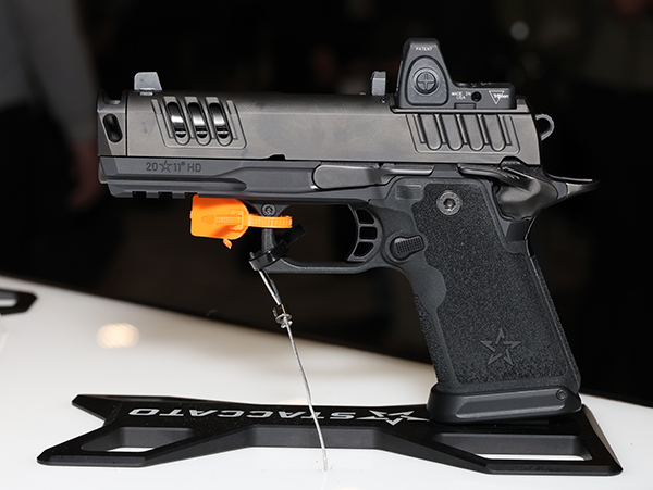 スタカートは2011プラットフォームをベースにグロック用マガジンを使用するHDシリーズを展開し好評を得ているが、今回は4インチ一体型コンプバレルを備えるHD C4Xを発表した。口径9mmx19のみ、7075アルミ合金フレームで15連マガジンが2本付属する。既にカリフォルニア州コンプライアントモデルが販売許可を得ており、これは売れそうだ。スタンダードパッケージで$3,499となっている。