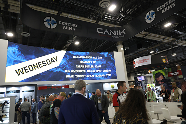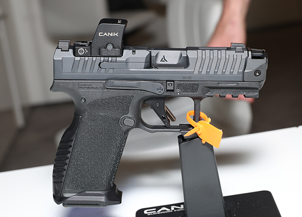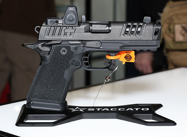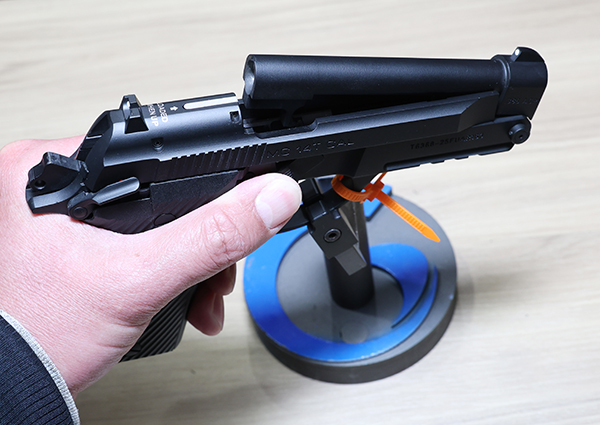 トルコの Girsan 製品を輸入・販売するEAA からは、すでにカリフォルニア州での販売許可を取得しているMC 14T California Solution が紹介された。マガジンセイフティおよびスライド上のローデッドチェンバーインジケーターを追加することで申請基準を満たし、落下テストをクリアして販売認可を得ている。最大の特徴は銃口の下にヒンジを備えるティップアップバレル機構でスライドを引くことなく、右側面のラッチ操作によってバレルを上方に開き、初弾を直接チャンバーへ装填できる点にある。1991年に発表されたベレッタ86のデザインを参考としており、こちらはダブルスタックマガジンが使用する設計だ。