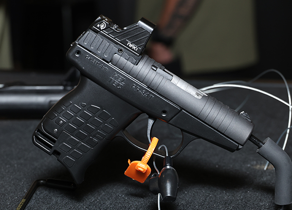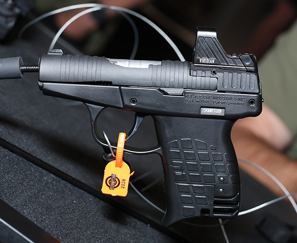 いつも奇抜なデザインで楽しませてくれるケルテックからは、回転式バレルとトップローディング方式を採用し、超軽量(273.9g)でありながら。380ACPを13発という驚異的な装弾数を実現したPR-3ATが紹介された(昨年発表されたよく似たモデルは、5.7×28mmのPR-5.7)。マガジンを排したトップローディング設計により、フレームのプロファイルがスリムかつコンパクトになり、チェンバー内と合わせて14発をロードできる。手動で1発ずつ装填も出来るが付属の7連ストリッパークリップを2つ使用して素早くロードすること可能だ。10連まで装填可能で州法などの規制に対応するモデルもある。全長142mm、バレル長は2.85インチ(73mm)、幅約24mm、ハンマー内蔵型のDAオンリーでトリガープルは約2㎏となっている。メーカー希望小売価格は$399.99とのこと。