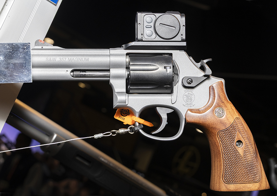 Specシリーズファミリー初のリボルバーとして加わったのが、このモデル686 Plus SpecシリーズRだ。7連発の.357マグナム仕様でPower Portを備えた4.13インチバレルを採用。最大の特徴はAimpoint ACRO P-2を標準装備としている点だ。ステンレスフレームとバレルはチタンカラーのセラコート仕上げでシリンダーにはブラックPVDコーティングが施されている。エンブレム入り木製グリップを装着、Savior Equipment製ピストルバッグ、S&W SpecシリーズR専用ナイフ、コイン、パッチ、さらにムーンクリップ10個が同梱される。メーカー希望小売価格は$1,999だ。