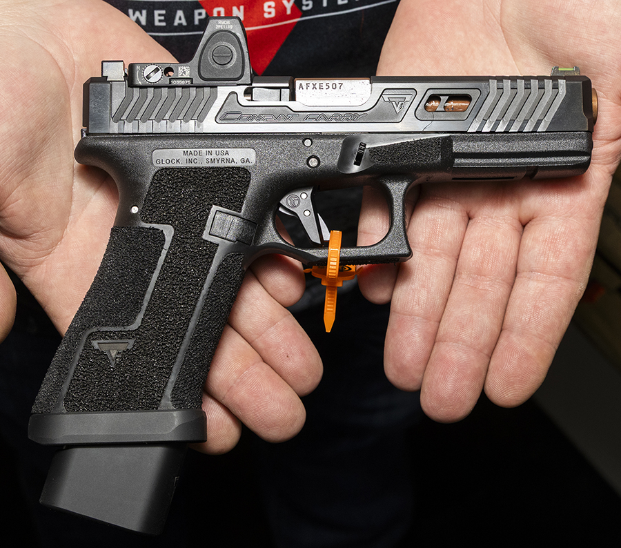 一方でGen6フレームの特徴でもあるアクセラレーターカット(グロックはサムレストと呼称)はフレーム側が大きく張り出し、Gen5のようにフラットな側面に傾斜を加工し直すのが難しい。そこで無理な変更を行なわず、そのままの形状を活かしつつ、スティップル加工も必要最小限の範囲にとどめるなど、新デザインに合わせた調整が行なわれている。結果として、Gen6のパームスウェル形状による握りやすさもそのまま活かされており、グリップのしやすさはむしろ向上している印象だ。TTIでは従来通りユーザー持ち込みのGen5やVシリーズに対しては既存のカスタムパッケージを提供しつつ、Gen6ベースのカスタマイズにも対応していく方針とのこと。