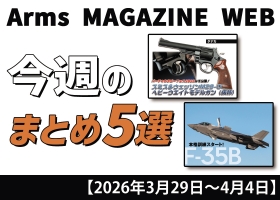 NEWS ニュース その他 2026/04/04 今週の注目ニュースをイッキ読み! トイガン、タクティカルギアなど新製品情報満載【2026年3月29日~4月4日】 Arms MAGAZINE WEBにて今週投稿された記事5選をご紹介! 2026年3月29日~4月4日の1週間で投稿された記事の中からアームズマガジンウェブ編集部が注目した5つをご紹介。今週は「月刊ア… (続きを読む) 月刊アームズマガジン ミリタリー 2026/04/04 F-35B 本格訓練スタート! F-35B 本格訓練スタート! 低速で飛行するF-35B。その後空中でピタリと止まり、その場で回った。この飛行機とは思えない挙動こそがF-35B最大の特徴だ 次世代ステルス戦闘機として、アメリカにて開… (続きを読む) 月刊アームズマガジン イベント取材レポート 2026/04/03 アサルトライフル専門のシューティングマッチ「SIGHTRON JAPAN Presents JAPAN STEEL CHALLENGE LONG GUN“2026”」 SIGHTRON JAPAN Presents JAPAN STEEL CHALLENGE LONG GUN“2026” アサルトライフル専門のシューティングマッチ 風見れんも初出場で見事完走!! 2… (続きを読む) 月刊アームズマガジン その他 2026/04/03 【気鋭作家×HOBBY JAPANコラボレーションナイフ企画】 市川志郎 I川商店 気鋭作家×HOBBY JAPAN コラボレーションナイフ企画 市川志郎 I川商店 「気鋭作家×HOBBY JAPANコラボレーションナイフ企画」の各作家にクローズアップ。ナイフと作家へのご理解を深めて… (続きを読む) 月刊アームズマガジン その他 2026/04/03 【気鋭作家×HOBBY JAPANコラボレーションナイフ企画】 石崎祐也 ISZナイフ 気鋭作家×HOBBY JAPANコラボレーションナイフ企画 石崎祐也 ISZナイフ 「気鋭作家×HOBBY JAPANコラボレーションナイフ企画」の各作家にクローズアップ。ナイフと作家へのご理解を深め… (続きを読む) 月刊アームズマガジン その他 2026/04/03 【気鋭作家×HOBBY JAPANコラボレーションナイフ企画】萩野 力 Asurah Knives 気鋭作家×HOBBY JAPAN コラボレーションナイフ企画 萩野 力 Asurah Knives 「気鋭作家×HOBBY JAPANコラボレーションナイフ企画」の各作家にクローズアップ。ナイフと作家… (続きを読む) 月刊アームズマガジン 車・バイク 2026/04/02 ホンダが新たに発信するバイクカルチャーの拠点、「Cub HOUSE」CT 125・ハンターカブ、MONKEY 125、Dax125 2026年3月27~29日にかけて、東京ビッグサイトで開催された「東京モーターサイクルショー 2026」。各メーカーが注目の製品を展示して多くの来場者が足を運んでいた。そのなかでも、注目したのはホンダ… (続きを読む) 月刊アームズマガジン エアガン 2026/04/02 試作&モックアップがお披露目!開発中の新製品情報「タナカ 新型ルガーP08ガスブローバックガン/キアッパ ライノリボルバー ガスガン&モデルガン」 『バーチャルホビーフェス2026』で公開されたタナカの新製品! ホビージャパン主催『バーチャルホビーフェス2026』会場はこちら! https://vr-hobbyfes.jp/ 新型ルガーP08ガス… (続きを読む) 月刊アームズマガジン その他 2026/04/02 ビジネスからカジュアルシーンまで合わせやすいエレガントなデザイン「MTM WATCH H-61」 エレガントなデザインのミリタリーウォッチ ミリタリーウォッチといえば高性能で無骨なイメージを持たれる方が多いはずだ。ミリタリーウォッチは過酷な条件下でも正確に時を刻むことが求められるため、防水性や視認… (続きを読む) 月刊アームズマガジン エアガン 2026/04/01 今月のエアガン・モデルガン新製品【2026年4月 WEB公開記事】 Arms MAGAZINE WEBでは、毎月最新のエアガン・モデルガン新製品をレビュー記事にてご紹介しており、このページでは新製品レビュー記事を一覧でご確認いただけます! 記事は順次公開されますので、… (続きを読む) 月刊アームズマガジン その他 2026/03/31 日本人が今こそ知っておきたい「海洋・航空用兵思想」を解説 「イラストでまなぶ!用兵思想入門 海空編」3月31日発売! 「イラストでまなぶ! 用兵思想入門」シリーズ最新刊 「海洋航空用兵思想」をテーマに解説 用兵思想の基本を、分かりやすいイラストを用いながら解説していく「イラストでまなぶ!用兵思想入門」シリーズの「近世… (続きを読む) 月刊アームズマガジン 装備 2026/03/31 トルネード吉田監修によるコルト1851 NAVY用レザーアイテムが登場 「新 WESTERN魂!:続・ガンベルトの話 オールドスタイル編」で速報として初公開したイースト.Aの新製品コルト1851ネービー用牛革ホルスターを改めてご紹介。東京マルイの対象年齢10歳以上用のエア… (続きを読む) 月刊アームズマガジン エアガン 2026/03/30 『バーチャルホビーフェス2026』で公開されたタナカの新製品!「タナカ ベレッタ92F/92FS プロフェッショナルコンプ エボリューション2 HW ツートン/オールブラック with サプレッサーモデルガン」 某映画に登場するコンペンセイターつき92Fを再現 主人公である孤独なプロの殺し屋と少女との出会いとその結末を描いた映画の中で、主人公が愛用するコンペンセイター付きベレッタ92Fを発火式モデルガンで再現… (続きを読む) 月刊アームズマガジン エアガン 2026/03/30 編集部イチ押し! 今月のトイガンニュー