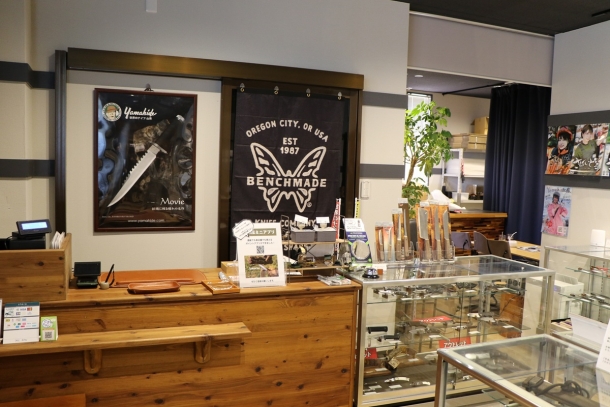 山秀は1940(昭和15)年の創業以来、刃物の中でも「アウトドアナイフ」を専門に扱い続けてきている会社になります。現在は、店頭には常時1,000点以上の商品を並べています。海外のファクトリーナイフがメインですが、国産のカスタムナイフなど幅広いジャンルの商品を扱っています。