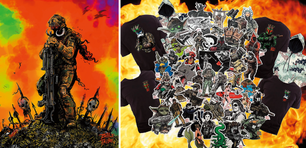 ”BattleTribe” のモチーフは、マット自身の知識と経験がベースとなっていることが多い。だがそれだけにとどまらず、映画やTVをはじめとする多種多様なポップカルチャーにも触発され、影響を受けている。アメリカが生んだ世界的に有名な作品や、特殊部隊好きなら誰もが知る作戦や戦闘をテーマに、オリジナルキャラクターを使って描かれているシリーズは、常に人気を呼んでいる。