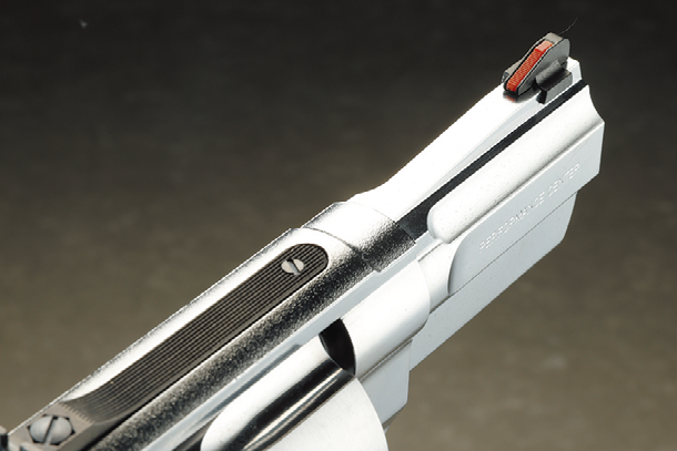 これもカスタムオーダーなので、注文があれば作るというスタンスのようだ。何挺作られたのかはこれまた不明。より希少感の高いモデルとなっている。タナカはこのフラットサイドの3インチモデルをVer.3仕様のガスガンで再現。フラットサイドバレル、レッドインサート入りフロントサイト、下側をカットしたサムピース、トリガーストップ付きトリガーなどの特徴も再現。モデル629をコンシールドキャリーしたいならこのモデルだ。
